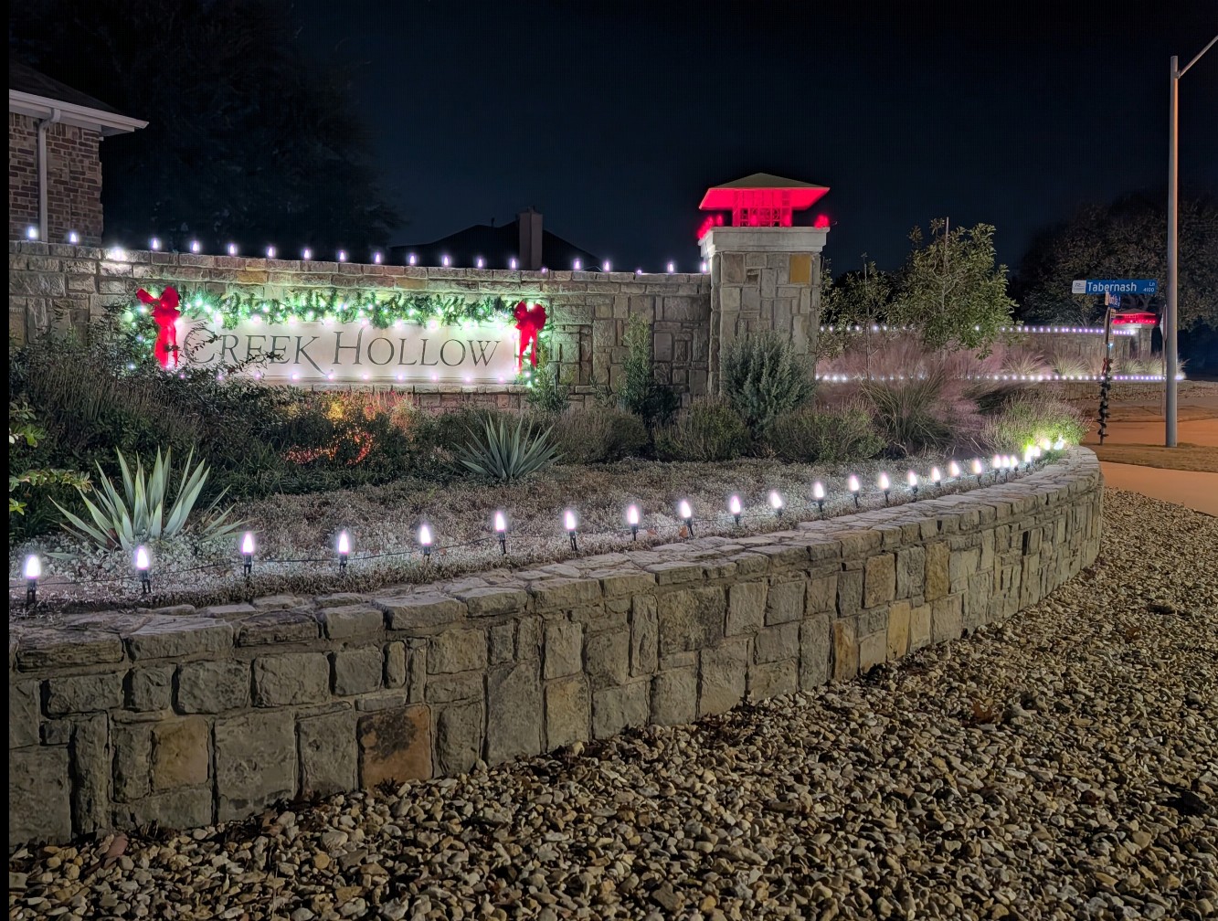 The Creek Hollow entrances are all lit and we are so excited to see the cheerful holiday lights. We want to wish all our neighbors a very Happy Holiday Season. We also want to call your attention to a couple of new items added to our HOA Documents page.